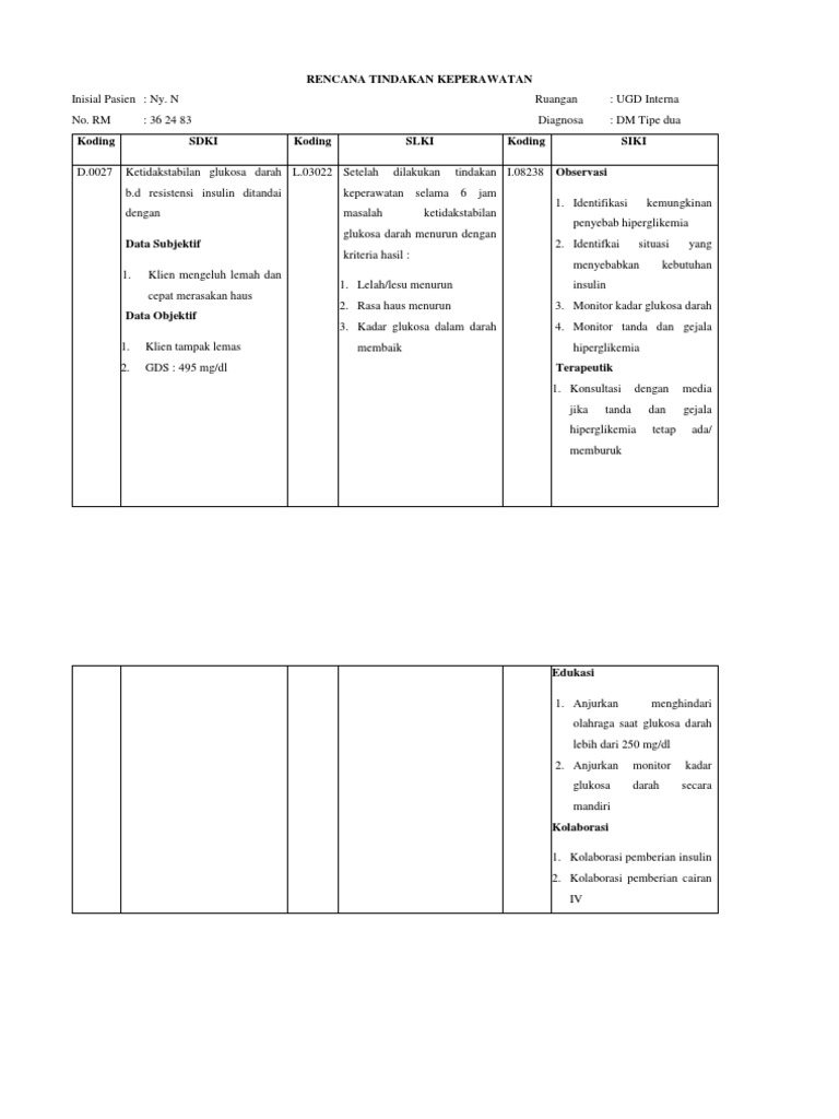 D.0027 Ketidakstabilan glukosa darah L.03022 Setelah dilakukan tindakan I.08238 Observasi