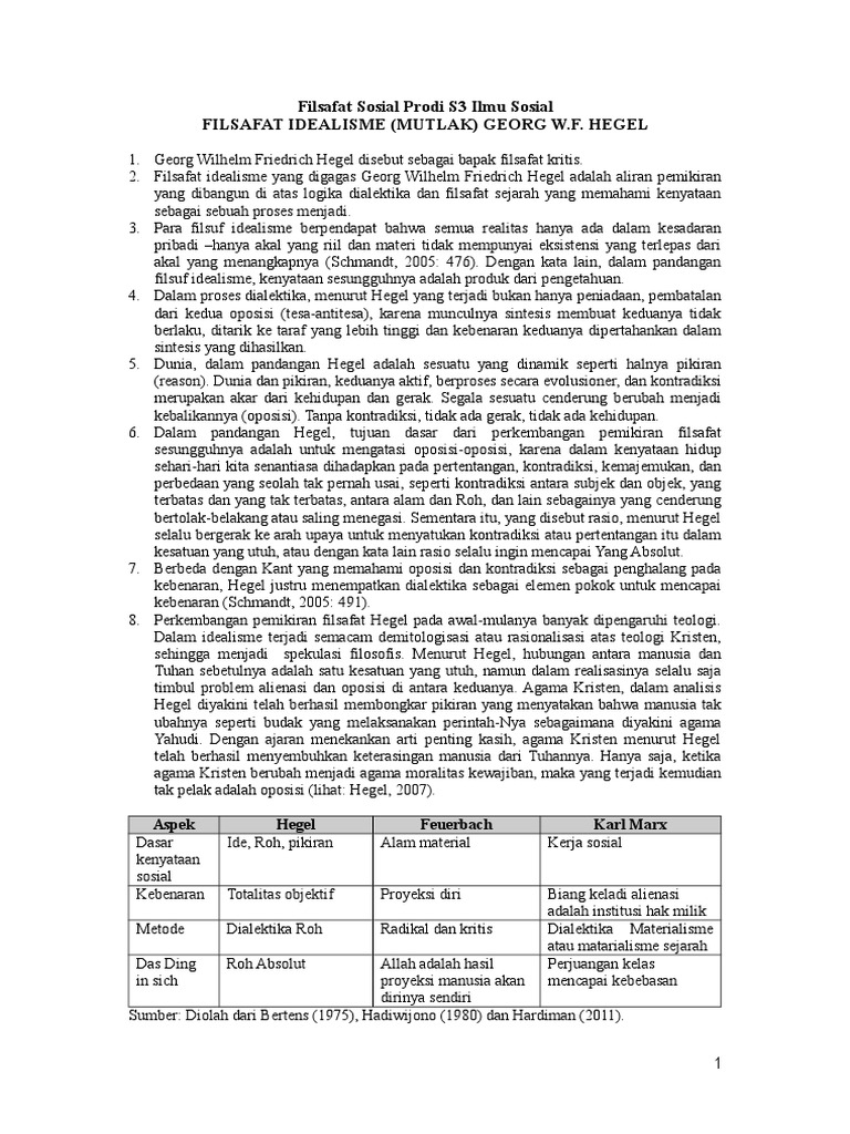 1. Georg Wilhelm Friedrich Hegel disebut sebagai bapak filsafat kritis.