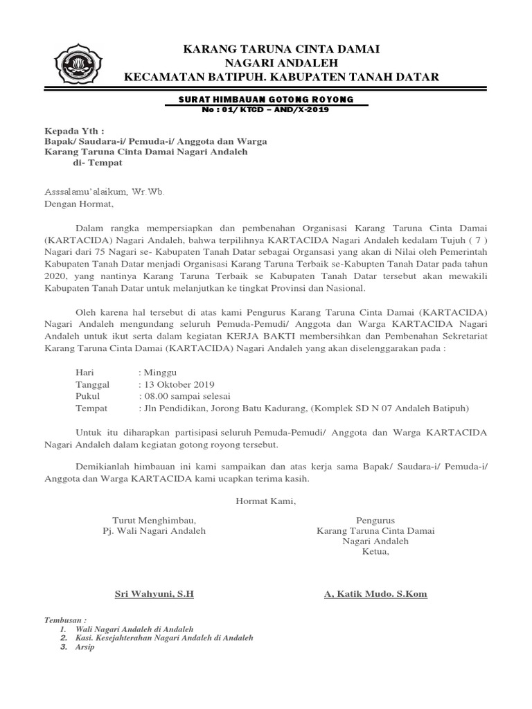 Oleh karena hal tersebut di atas kami Pengurus Karang Taruna Cinta Damai (KARTACIDA)