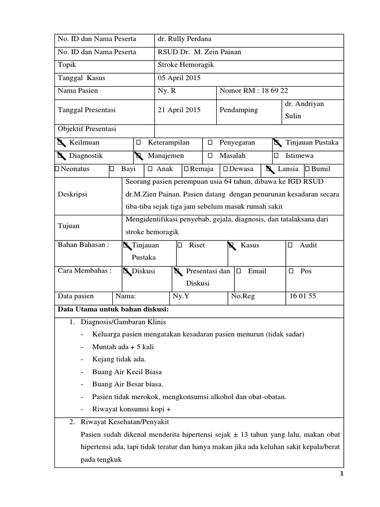 Deskripsi dr.M.Zien Painan. Pasien datang dengan penurunan kesadaran secara