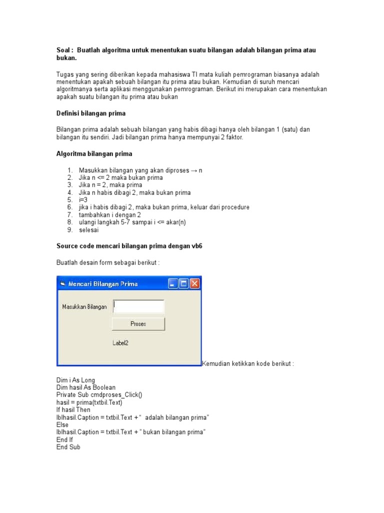 Source code mencari bilangan prima dengan vb6