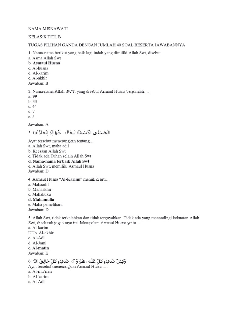 1. Nama-nama berikut yang baik lagi indah yang dimiliki Allah Swt, disebut