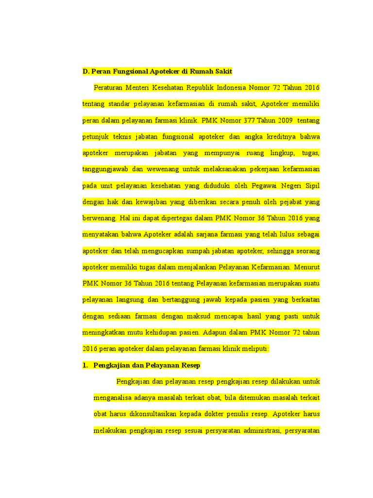 peran dalam pelayanan farmasi klinik. PMK Nomor 377 Tahun 2009 tentang