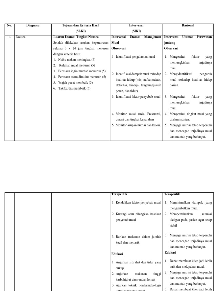 1. Nausea Luaran Utama: Tingkat Nausea Intervensi Utama: Manajemen Intervensi Utama: Perawatan