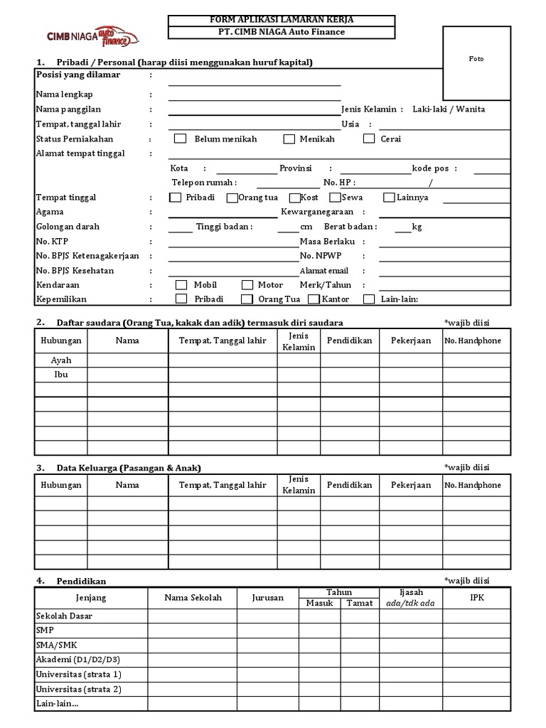 FORM APLIKASI LAMARAN KERJA