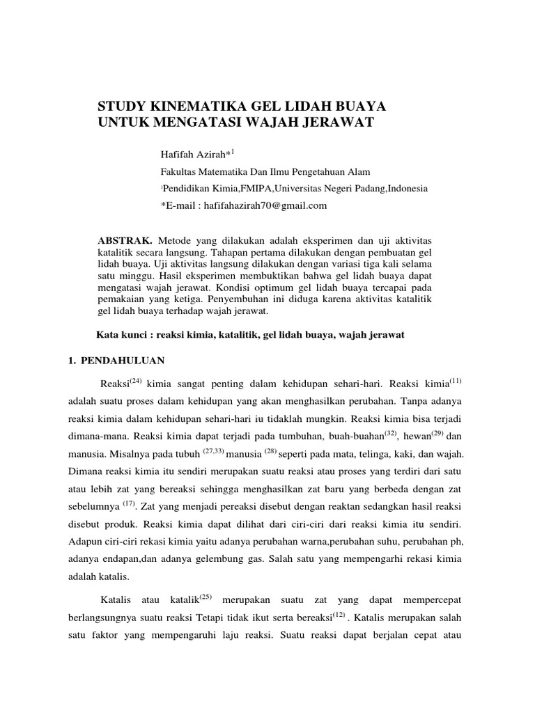 Kata kunci : reaksi kimia, katalitik, gel lidah buaya, wajah jerawat