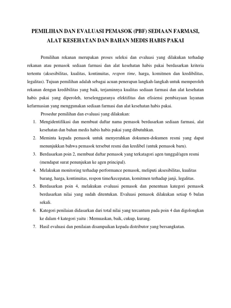 PEMILIHAN DAN EVALUASI PEMASOK (PBF) SEDIAAN FARMASI,