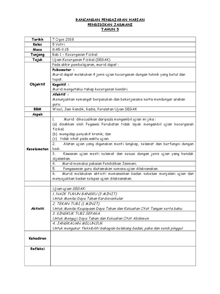 Tajuk Ujian Kecergasan Fizikal (SEGAK)