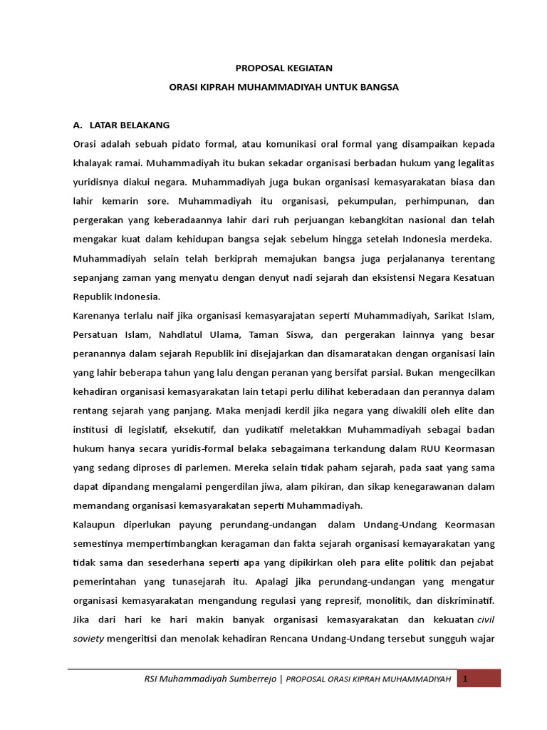 RSI Muhammadiyah Sumberrejo | PROPOSAL ORASI KIPRAH MUHAMMADIYAH 1