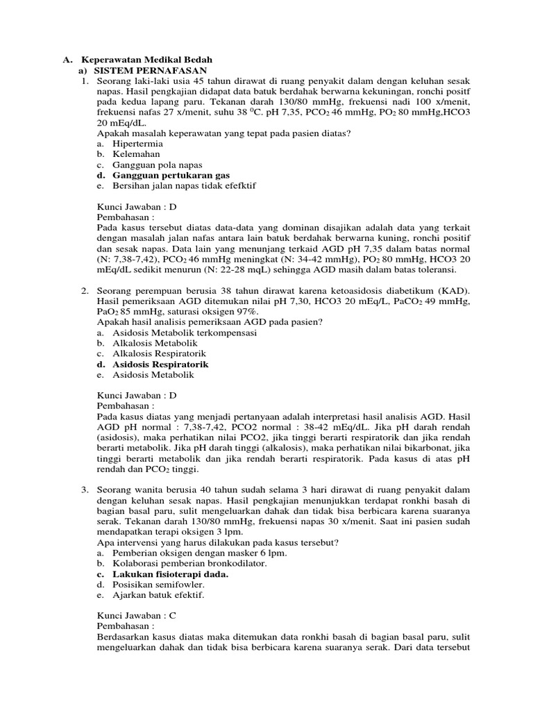 3. Seorang laki-laki usia 64 tahun dirawat diruang penyakit dalam dengan keluhan sesak