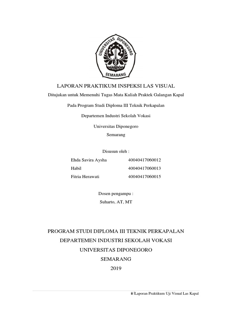 iii |Laporan Praktikum Uji Visual Las Kapal