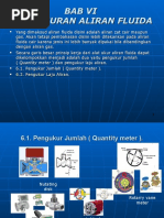 baik berupa kecepatan aliran, kapasitas aliran maupun volumenya atau beratnya fluida mempunyai aplikasi yang bermacam macam.