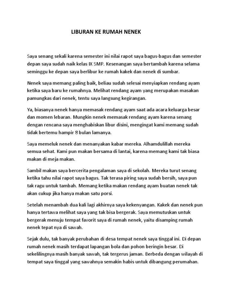 seminggu ke depan saya berlibur ke rumah kakek dan nenek di sumbar.