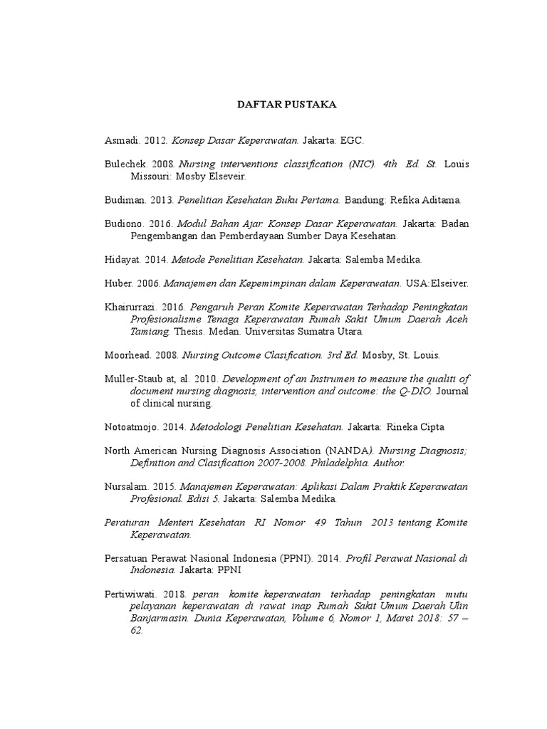 Sumijatun, 2016. Konsep Dasar Menuju Keperawatan Profesional, Jakarta: Trans