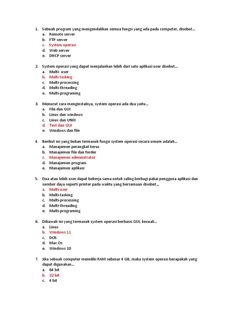 7. Jika sebuah computer memiliki RAM sebesar 4 GB, maka system operasi berapakah yang