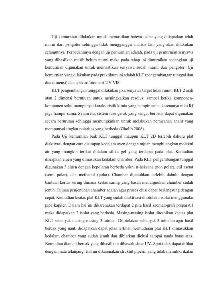 sehingga pengujian kemurnian hanya dilihat berdasarkan pada hasil KLT baik tunggal