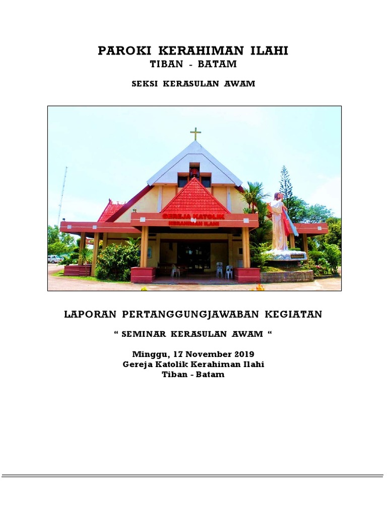 3. Tempat Pelaksanaan : Gereja Katolik Kerahiman Ilahi Tiban