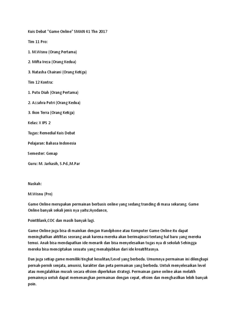 Kuis Debat "Game Online" SMAN 41 Thn 2017