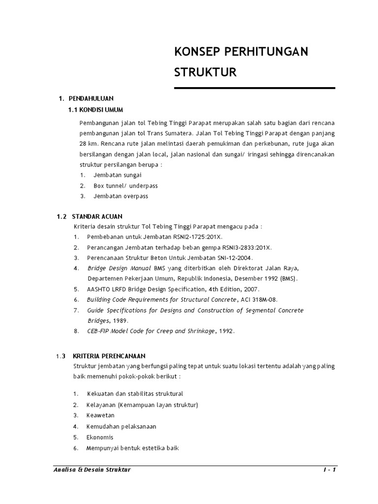 Kriteria desain struktur Tol Tebing Tinggi Parapat mengacu pada :