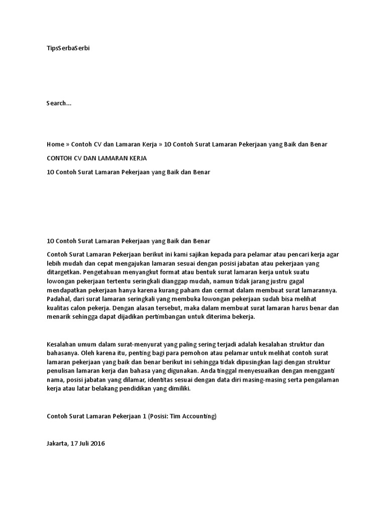 lamaran pekerjaan yang baik dan benar berikut ini sehingga tidak dipusingkan lagi dengan struktur