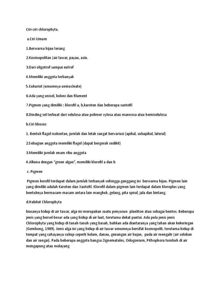 Ciri-ciri chlorophyta.
