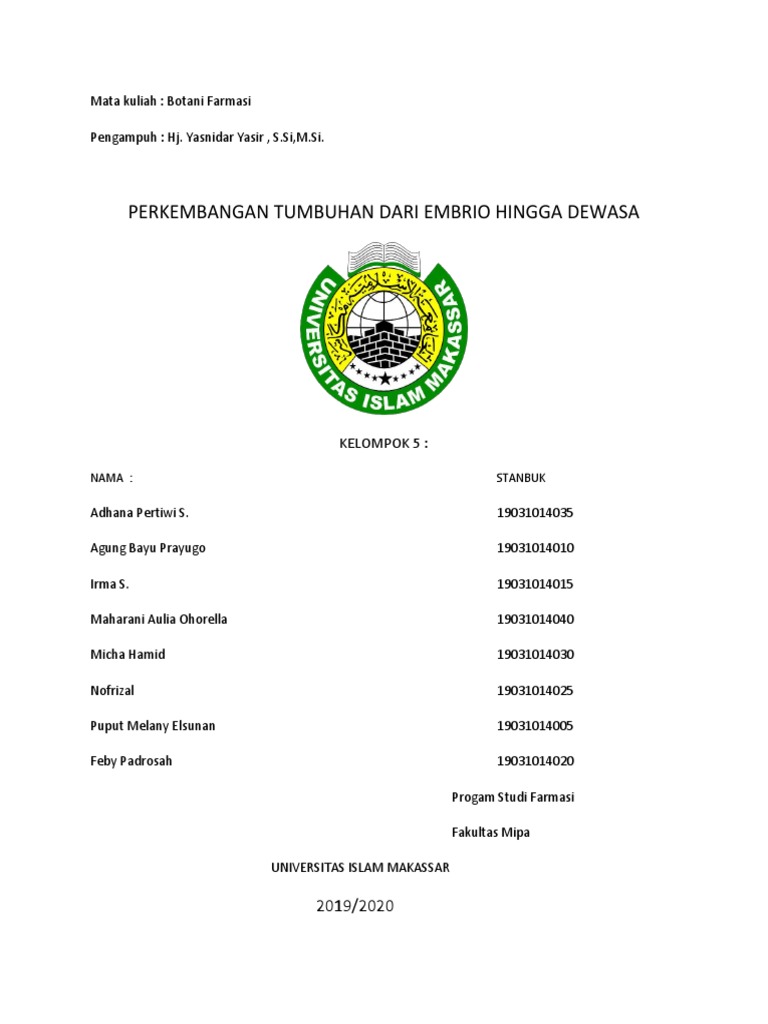 Makalah berjudul “Perkembangan Tumbuhan dari Embrio hingga Dewasa” disusun