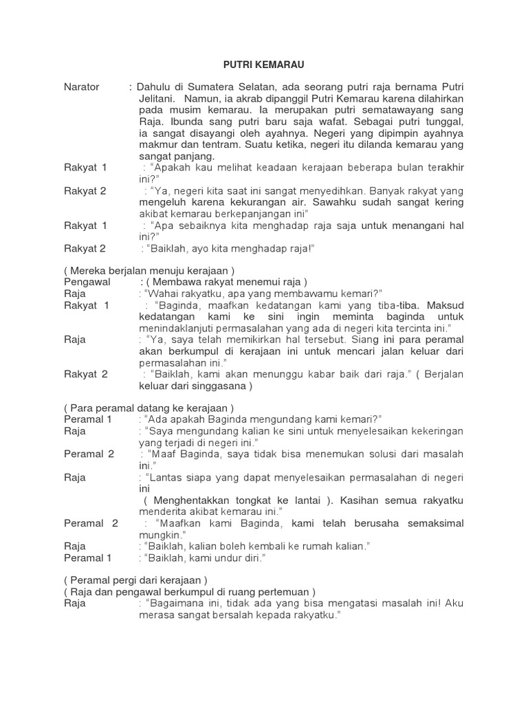 Raja : ( Menenangkan Putri Kemarau ) “Ada apa putriku?”