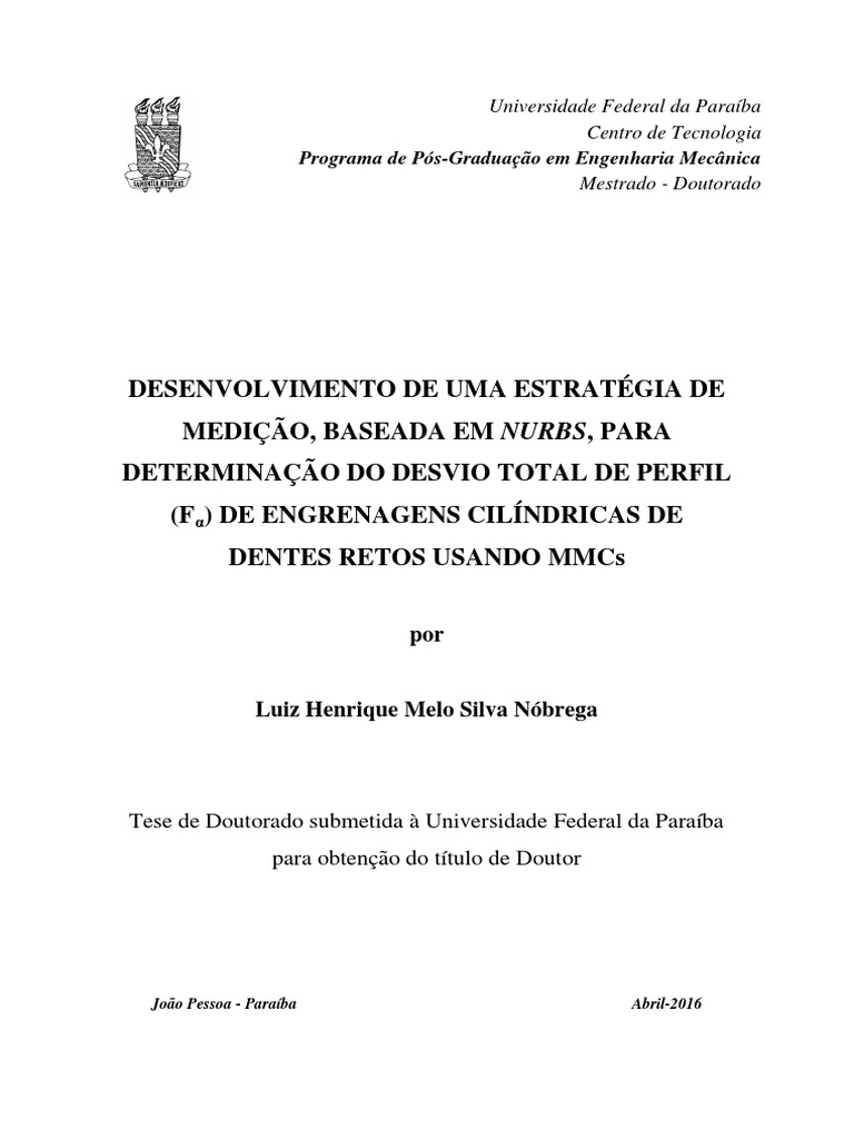 segundo a norma ISO 1328, fazendo o uso da ferramenta matemática NURBS (Non –
