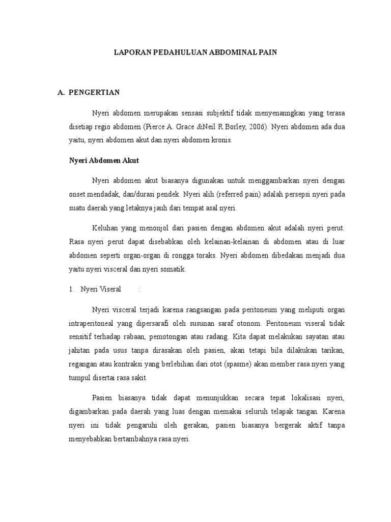 abdomen seperti organ-organ di rongga toraks. Nyeri abdomen dibedakan menjadi dua