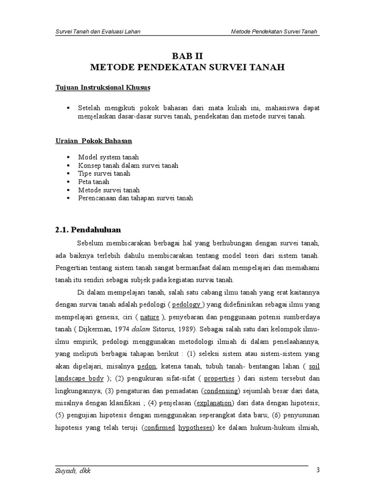 Survei Tanah dan Evaluasi Lahan Metode Pendekatan Survei Tanah