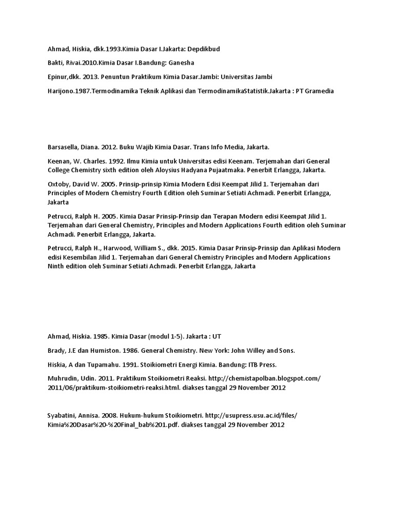 Hiskia, A dan Tupamahu. 1991. Stoikiometri Energi Kimia. Bandung: ITB Press.