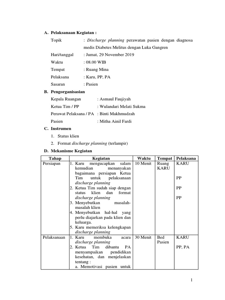 Topik : Discharge planning perawatan pasien dengan diagnosa