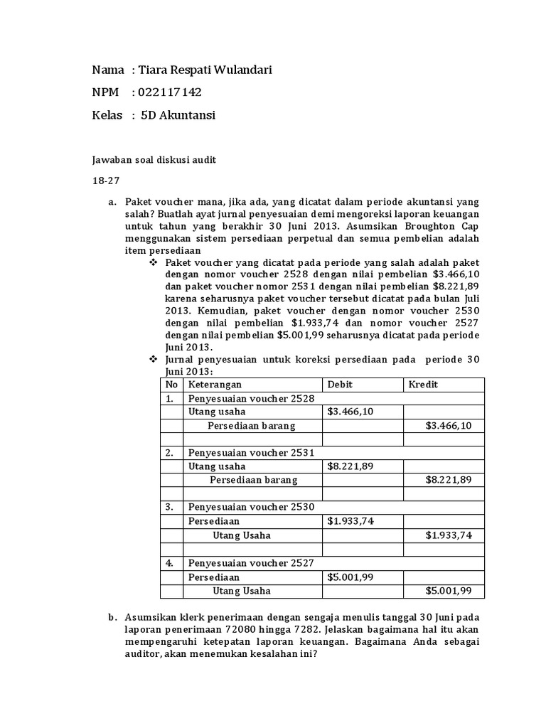 terjadinya ketidakakuratan laporan. Jawaban pada bagian b