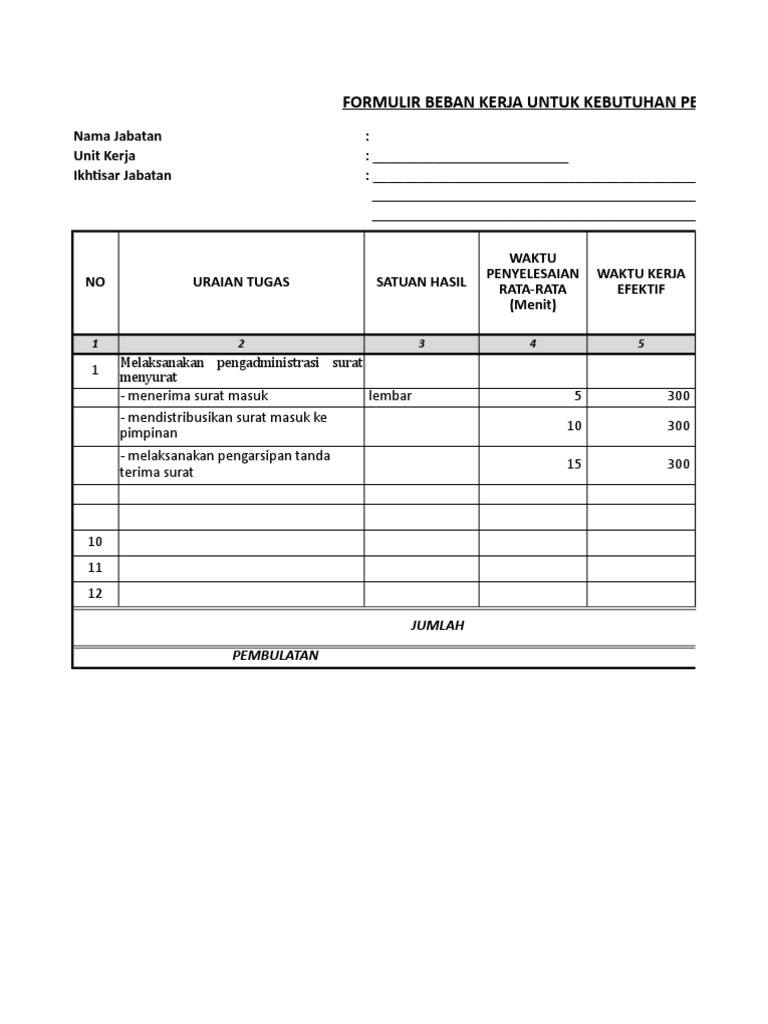 FORMULIR BEBAN KERJA UNTUK KEBUTUHAN PEGAWAI
