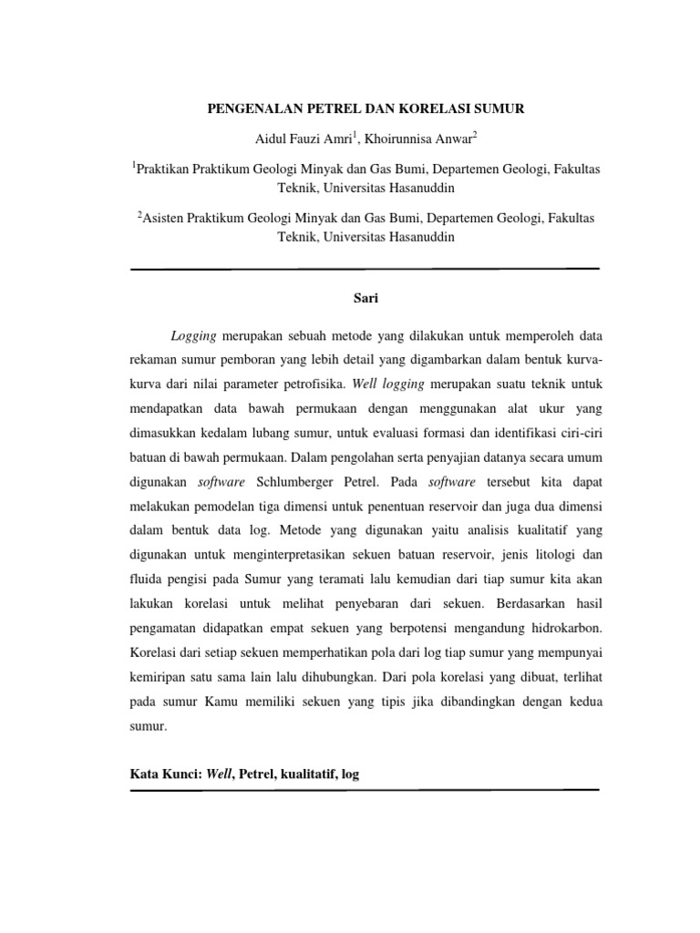 PENGENALAN PETREL DAN KORELASI SUMUR