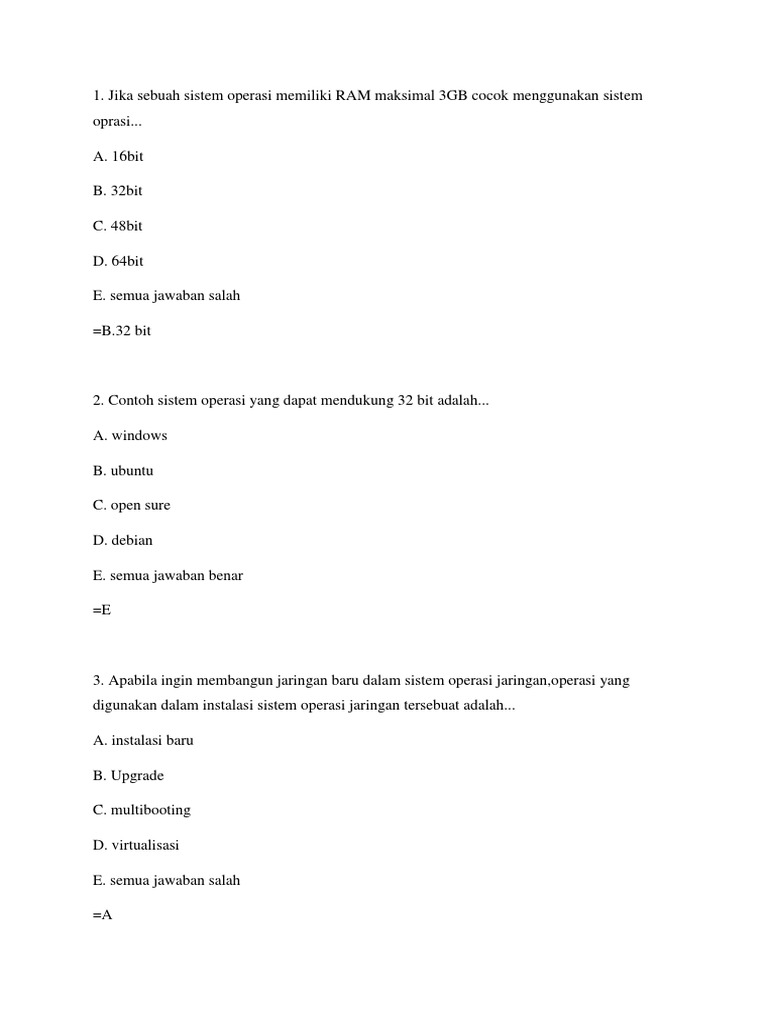 2. Contoh sistem operasi yang dapat mendukung 32 bit adalah...
