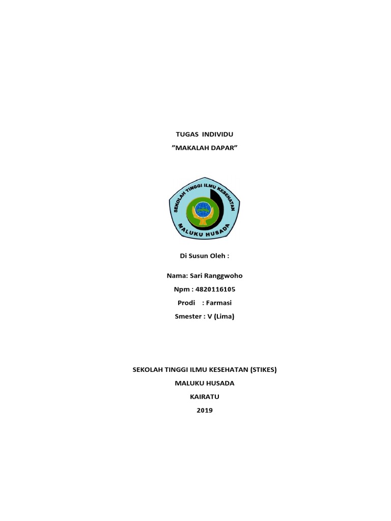 Farmakogi “LARUTAN DAPAR” tepat pada waktunya.Makalah ini disusun guna