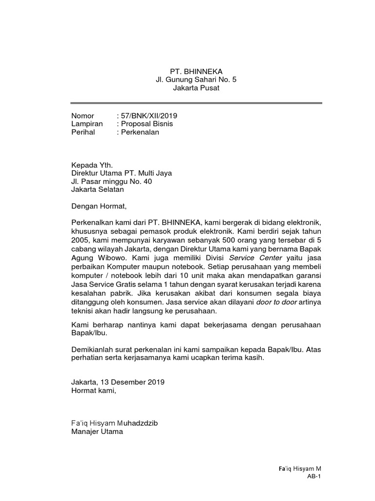 Demikianlah surat perkenalan ini kami sampaikan kepada Bapak/Ibu. Atas