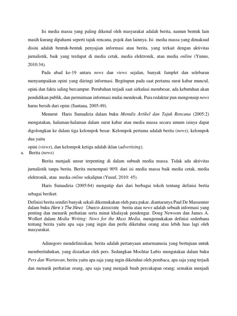 masih kurang dipahami seperti tajuk rencana, pojok dan lainnya. Isi media massa yang dimaksud