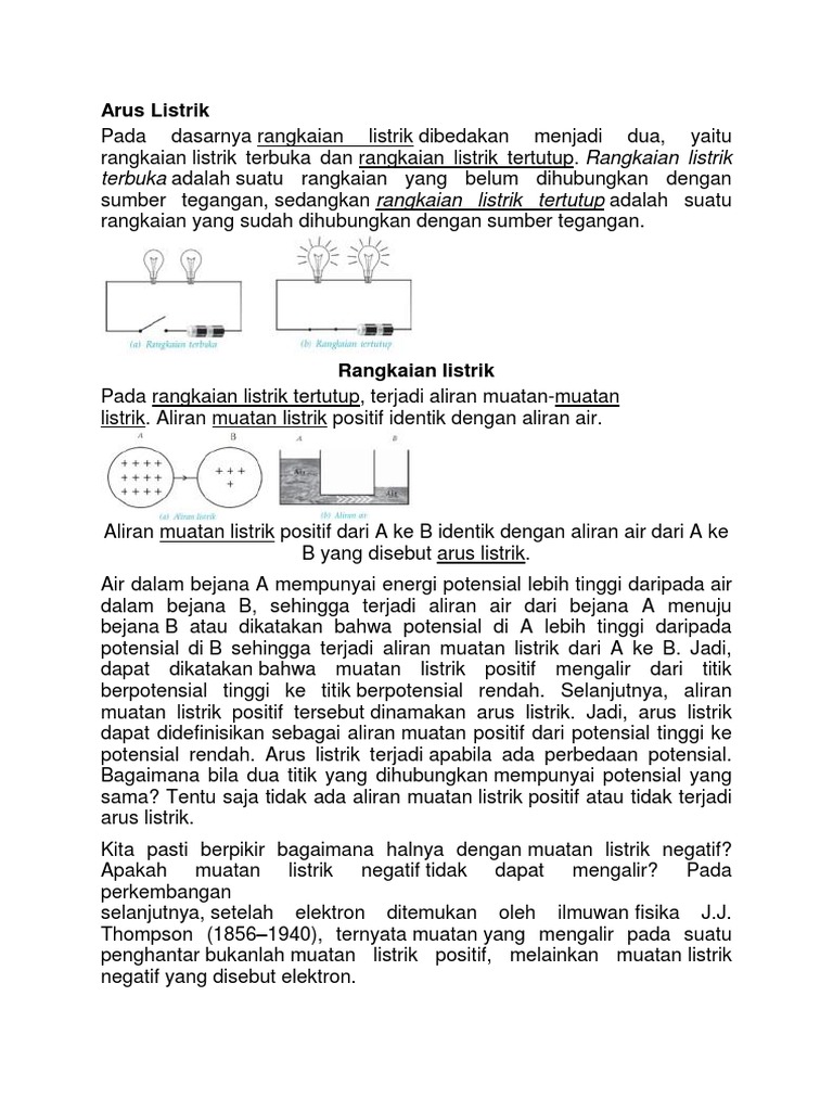 potensial rendah. Arus listrik terjadi apabila ada perbedaan potensial.