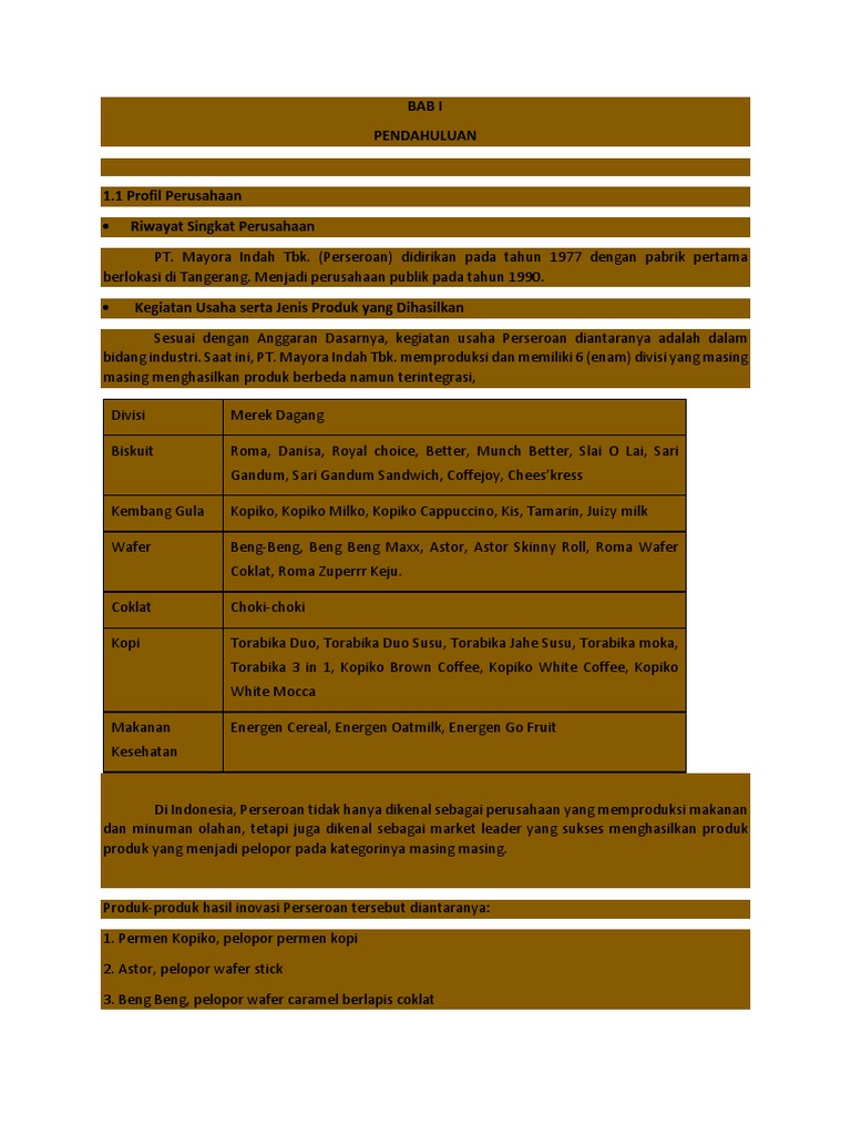 PT.Mayora Indah tbk. Adalah perusahaan yang bergerak dibidang makanan dan minuman