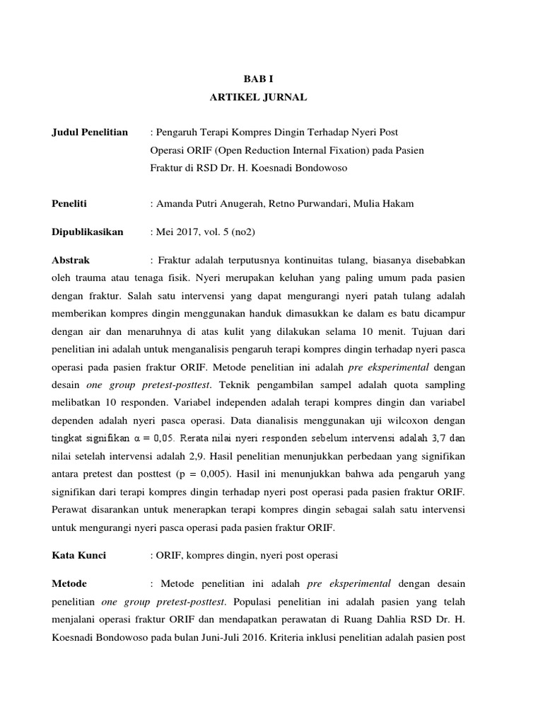 Kata Kunci : ORIF, kompres dingin, nyeri post operasi