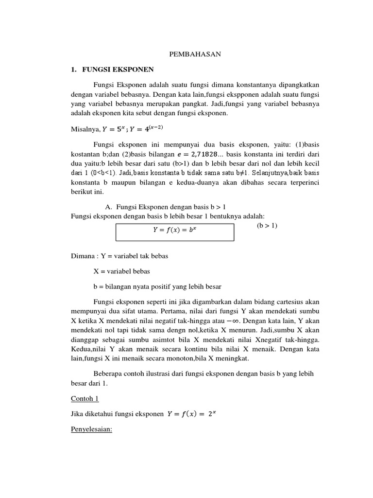 Fungsi eksponen ini mempunyai dua basis eksponen, yaitu: (1)basis