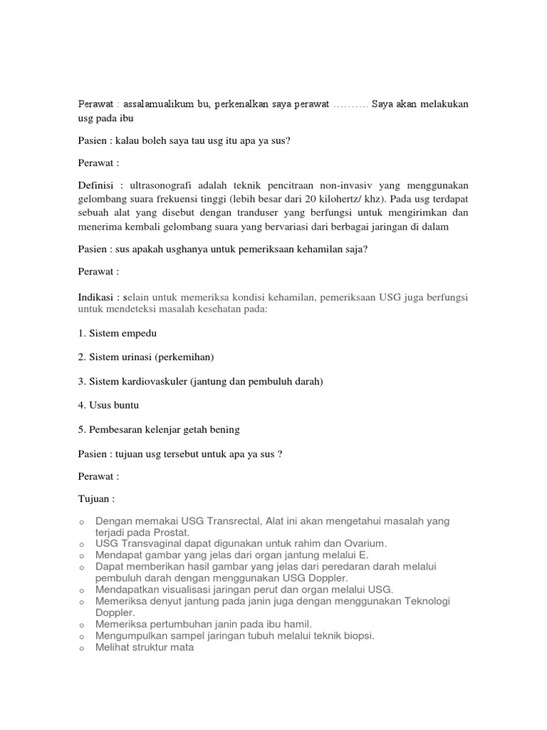 Pasien : kalau boleh saya tau usg itu apa ya sus?