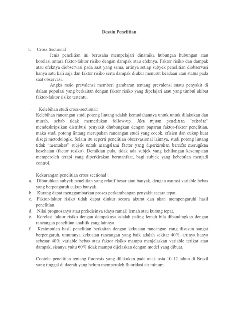 disegi metodologik. Selain itu seperti penelitian observasional lainnya, studi potong lintang
