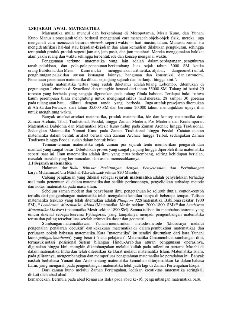 Sedangkan Matematika Yunani Kuno pada Zaman Tradisional hingga Feodal. Catatan-catatan
