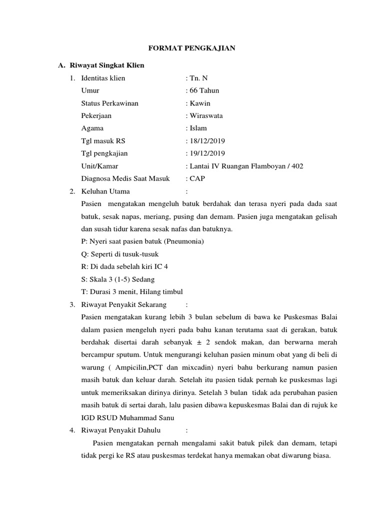 a. Sebelum Sakit : Pasien mengatakan sebelum sakit dapat beraktivitas tanpa