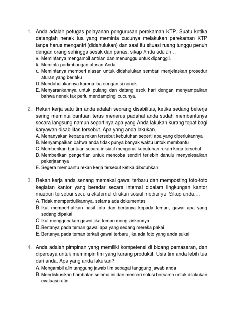 2. Rekan kerja satu tim anda adalah seorang disabilitas, ketika sedang bekerja