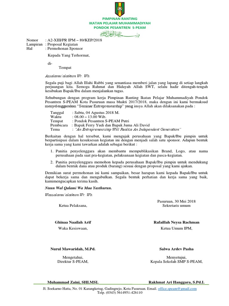 Hal : Permohonan Sponsor