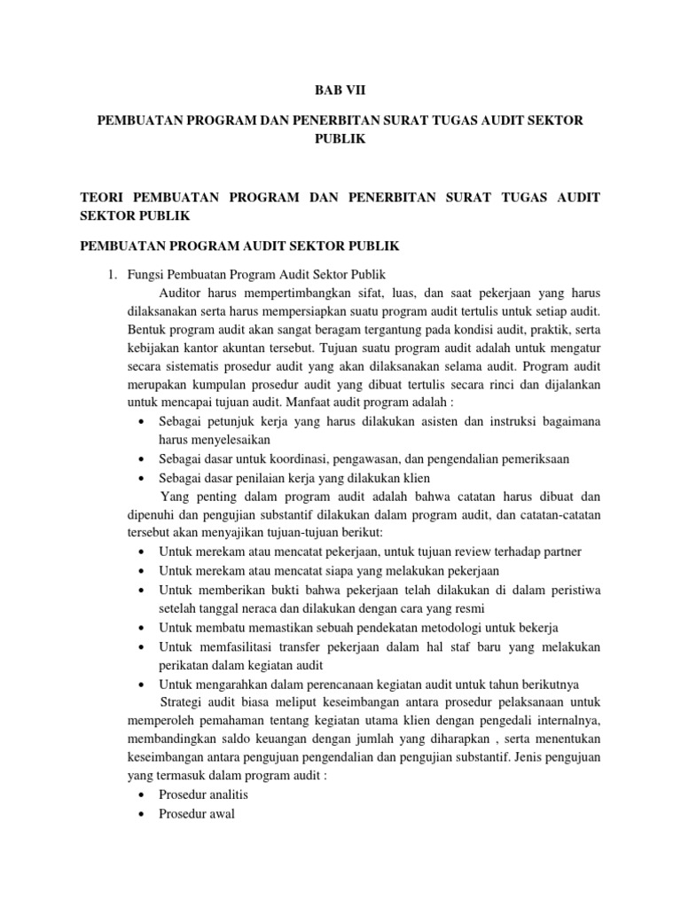 audit prosedur. Audit program (program pemeriksaan) merupakan daftar prosedur pengauditan